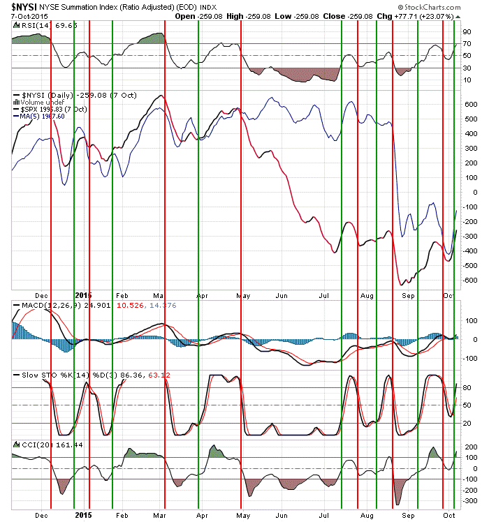 The Summation Index is a fairly reliable indicator of market cycles; a non-confirmed reversal as we just experienced happens periodically, but not often. There is still room to the upside in the momentum indicators for the Summation Index.