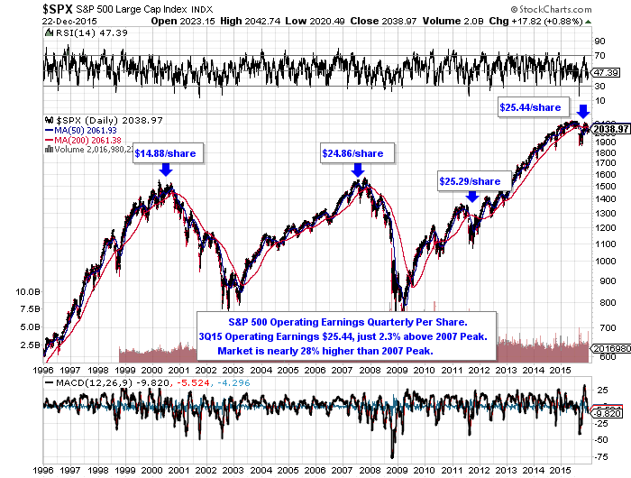 Submitted by Wespac Advisors, LLC on December 22nd, 2015- At the beginning of 2015, consensus was for S&P 500 operating earnings to reach around $130/share, or 15% higher than 2014.