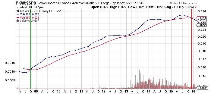 Submitted by Wespac Advisors, LLC on February 3rd, 2016- Over the past seven years, there has been growing leadership by stocks whose companies were the most aggressive in reducing share counts by buying back their own stock.