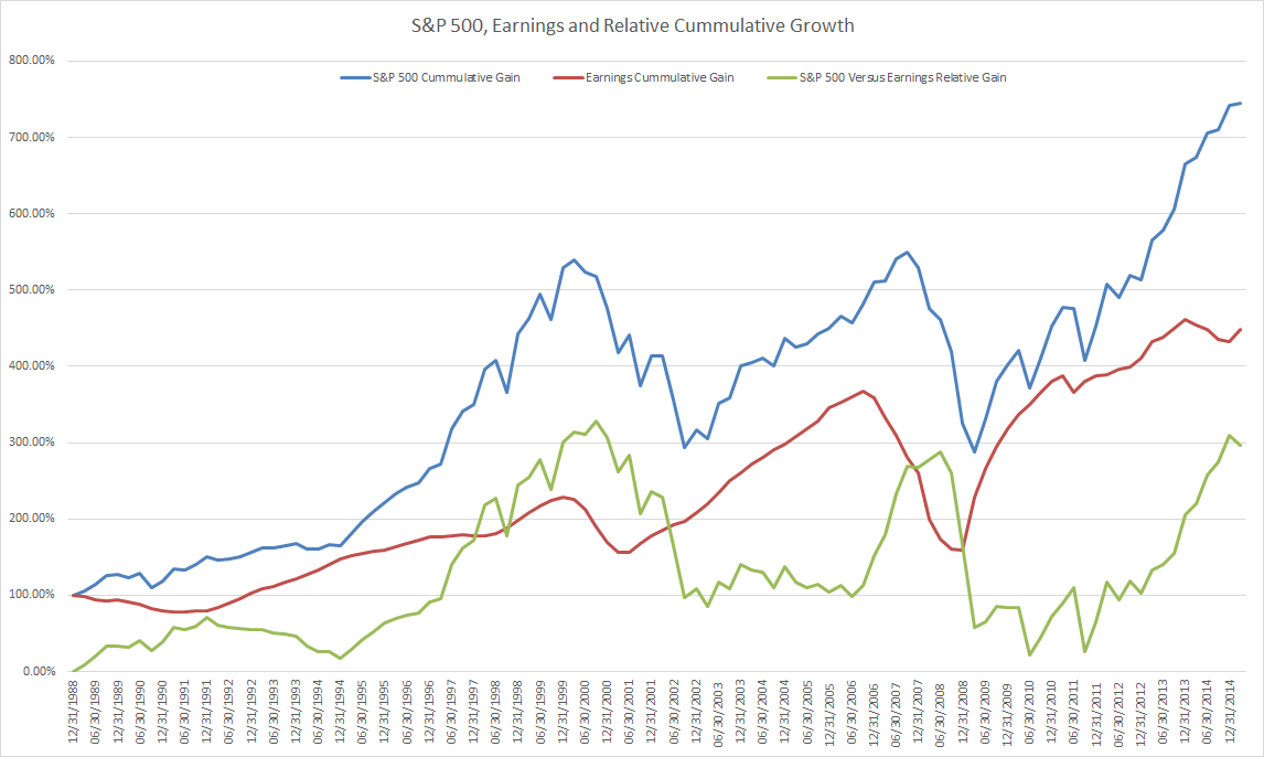 - In the last two market reversals, the cumulative growth rate of the S&P 500 was 3x the cumulative growth rate of S&P 500 operating earnings — this occurred again in 4Q14.