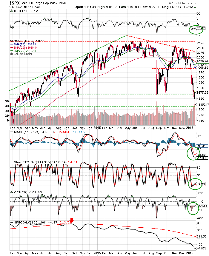 - The S&P 500 corrected below its August 2015 lows reaching lows we have not seen since April 2014 and October 2014; the S&P 500 is clearly oversold and is due for a bounce.