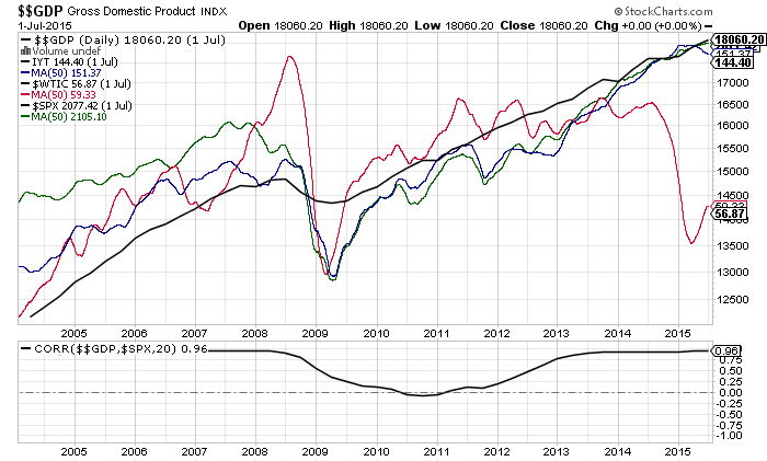 - As a final note, we are in uncharted waters now with crude oil dropping below 2009 levels; GDP, crude oil, the transports, and the S&P 500 have long traveled with high correlation. If the fall in crude does not find support and begin to rally, it will certainly raise the question of whether GDP and the S&P 500 will catch down to oil.